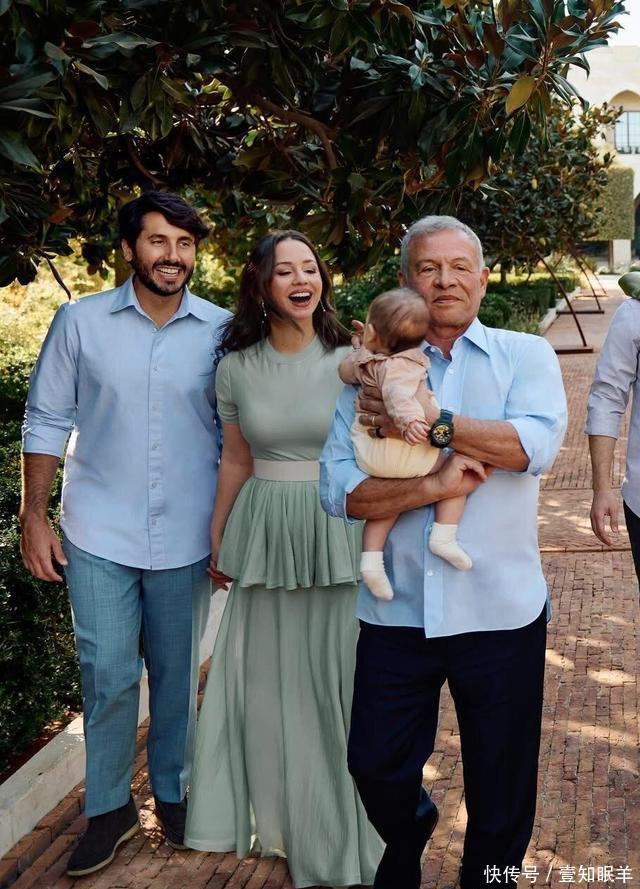 12月13日,约旦王室晒出了圣诞照片,一家三代其乐融融。王后拉尼娅抱着孙女伊曼小公主走在前面,国王阿卜杜拉小心翼翼地抱着外孙女阿米娜紧随其后。 他们的身边,围绕着儿子、儿媳、女儿、女婿,一家人喜笑颜开。